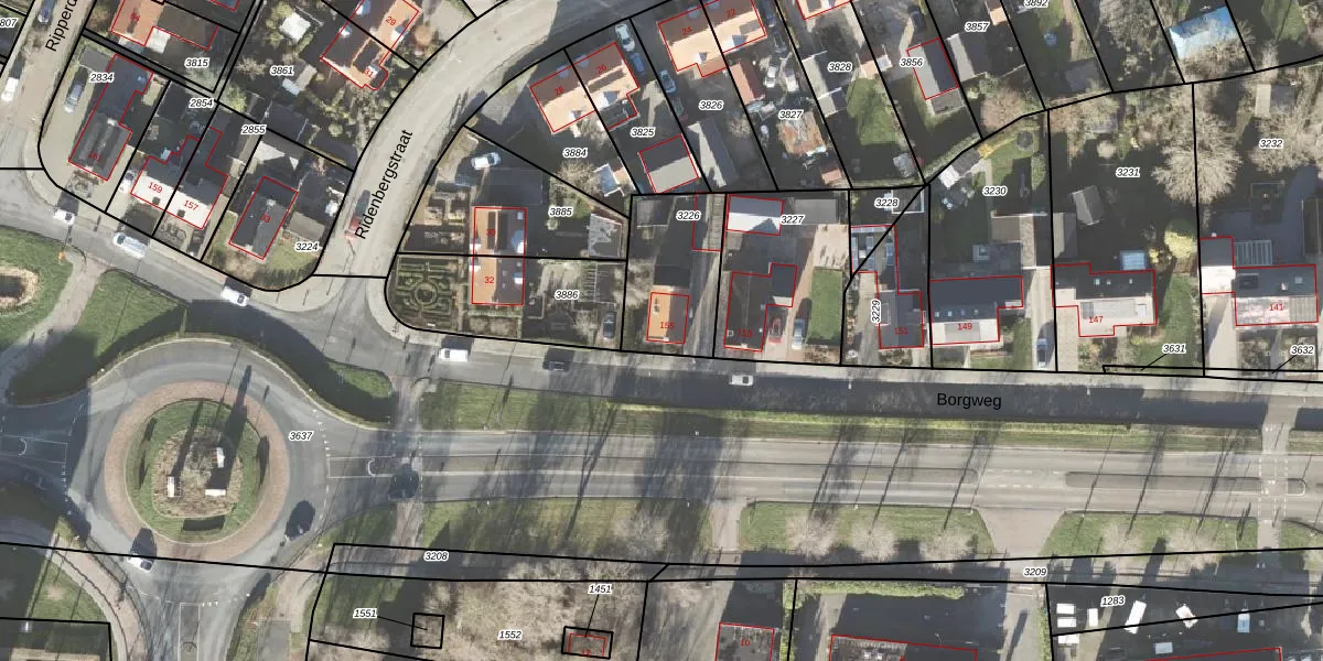 Gebruik de zoekbalk of klik op een perceel voor informatie over de adressen binnen dit perceel.
