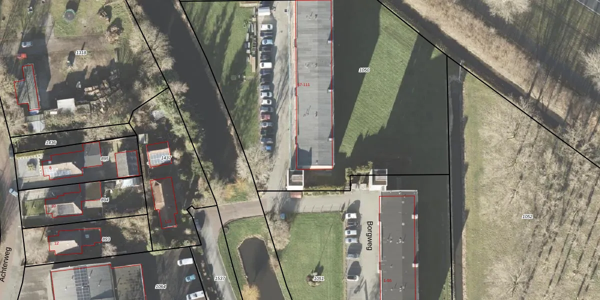 Het perceel waarop Borgweg 57-G-2 staat heeft een oppervlakte van 4725 m². Dit is een zeer groot perceel. De perceeloppervlakte wordt geregistreerd door het Kadaster. Gedetailleerde informatie over de maten van dit perceel kunt u vinden in het rapport Kadastrale kaart met maatvoering van Borgweg 57-G-2.
