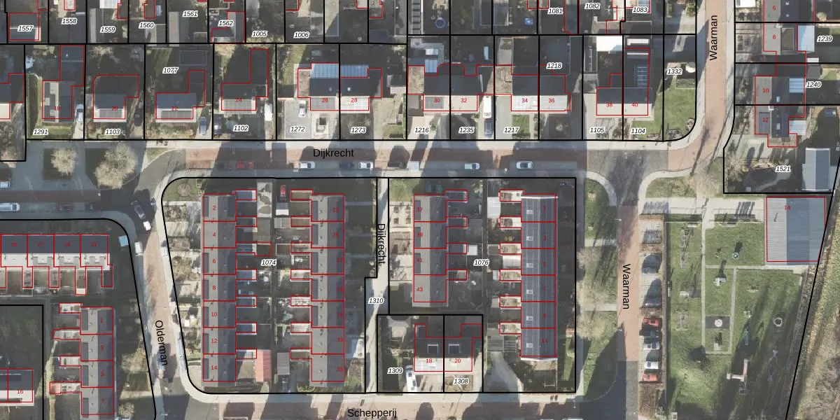 Het perceel waarop Dijkrecht 37 staat heeft een oppervlakte van 1865 m². Dit is een zeer groot perceel. De perceeloppervlakte wordt geregistreerd door het Kadaster. Gedetailleerde informatie over de maten van dit perceel kunt u vinden in het rapport Kadastrale kaart met maatvoering van Dijkrecht 37.
