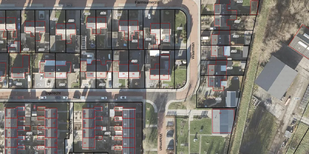 Gebruik de zoekbalk of klik op een perceel voor informatie over de adressen binnen dit perceel.