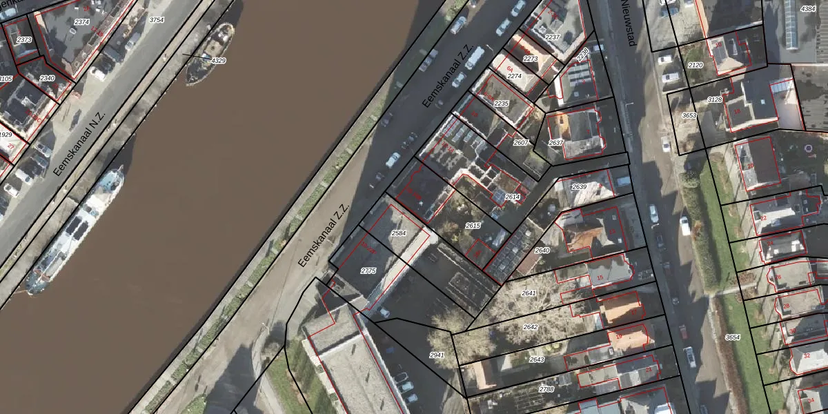 Eemskanaal Z.Z. 16-B is gelegen op kadastraal perceel DZL01D2615. Deze kadastrale aanduiding is uniek en wordt gebruikt door het Kadaster om eigendomsrechten en andere zakelijke rechten vast te leggen. Het perceel maakt onderdeel uit van de kadastrale gemeente Delfzijl.