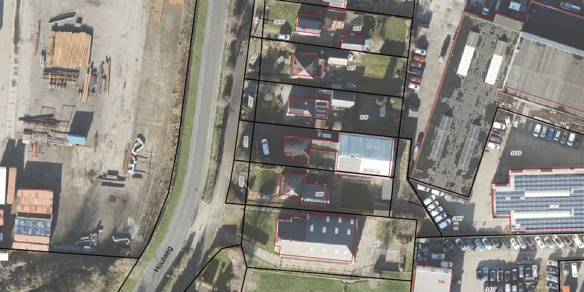 Houtweg 34 is gelegen op kadastraal perceel DZL01L827. Deze kadastrale aanduiding is uniek en wordt gebruikt door het Kadaster om eigendomsrechten en andere zakelijke rechten vast te leggen. Het perceel maakt onderdeel uit van de kadastrale gemeente Delfzijl.