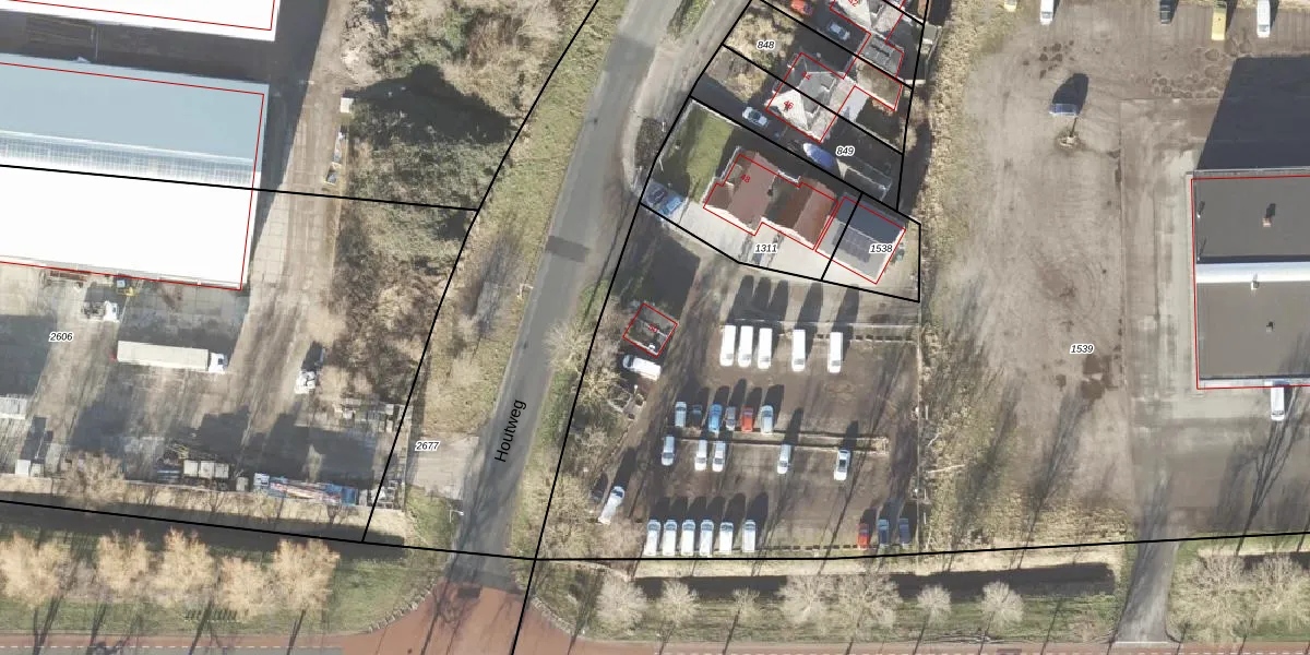 Het perceel waarop Houtweg 50 staat heeft een oppervlakte van 1,2 ha. Dit is een zeer groot perceel. De perceeloppervlakte wordt geregistreerd door het Kadaster. Gedetailleerde informatie over de maten van dit perceel kunt u vinden in het rapport Kadastrale kaart met maatvoering van Houtweg 50.