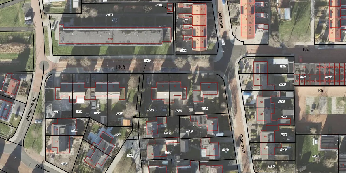 Het perceel waarop Kluft 11 staat heeft een oppervlakte van 342 m². Dit is een groot perceel. De perceeloppervlakte wordt geregistreerd door het Kadaster. Gedetailleerde informatie over de maten van dit perceel kunt u vinden in het rapport Kadastrale kaart met maatvoering van Kluft 11.