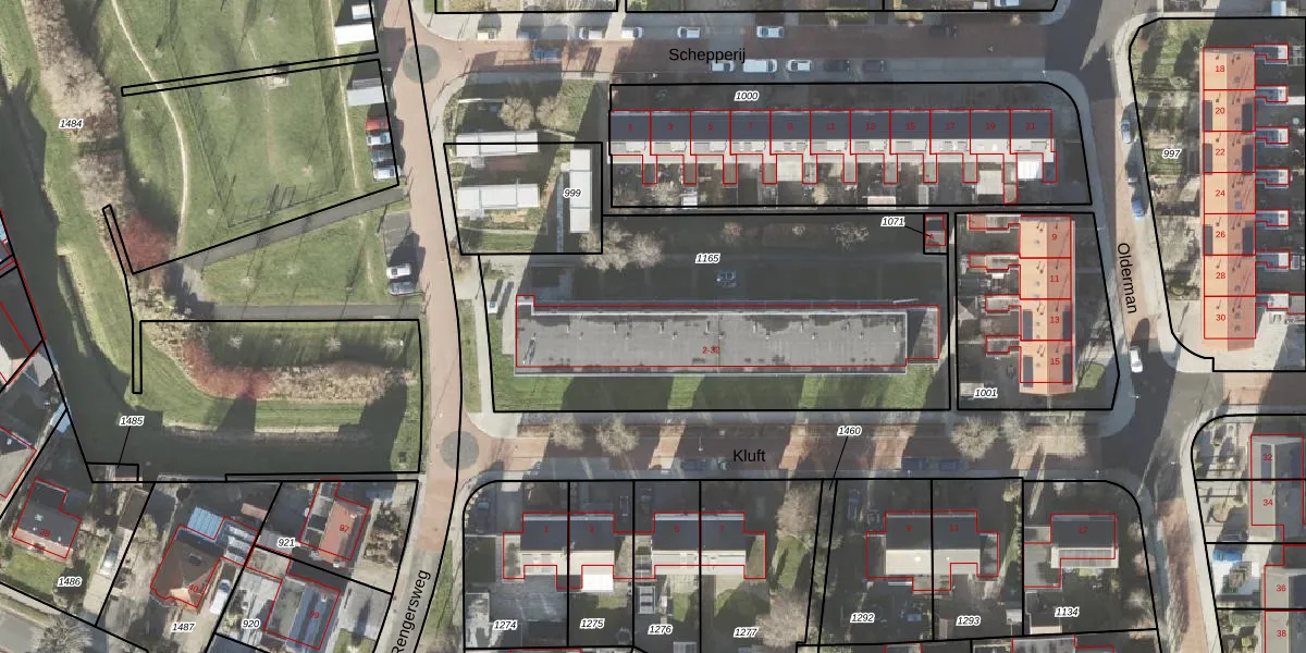 Het perceel waarop Kluft 22 staat heeft een oppervlakte van 1998 m². Dit is een zeer groot perceel. De perceeloppervlakte wordt geregistreerd door het Kadaster. Gedetailleerde informatie over de maten van dit perceel kunt u vinden in het rapport Kadastrale kaart met maatvoering van Kluft 22.