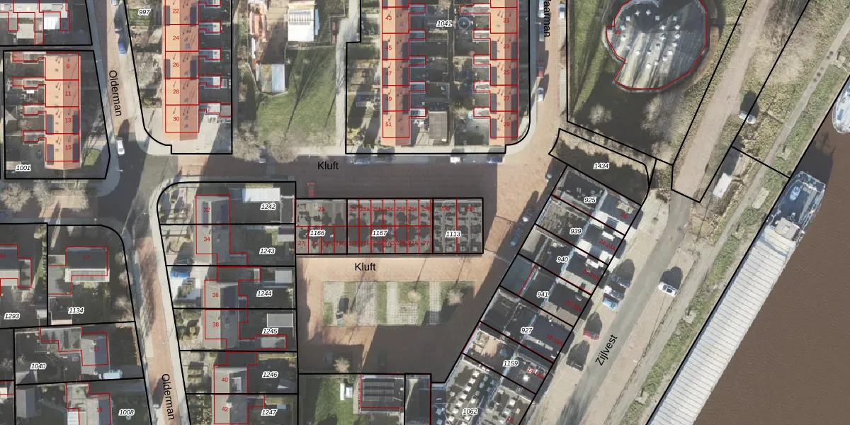 Kluft 25-f is gelegen op kadastraal perceel DZL01L1167. Deze kadastrale aanduiding is uniek en wordt gebruikt door het Kadaster om eigendomsrechten en andere zakelijke rechten vast te leggen. Het perceel maakt onderdeel uit van de kadastrale gemeente Delfzijl.