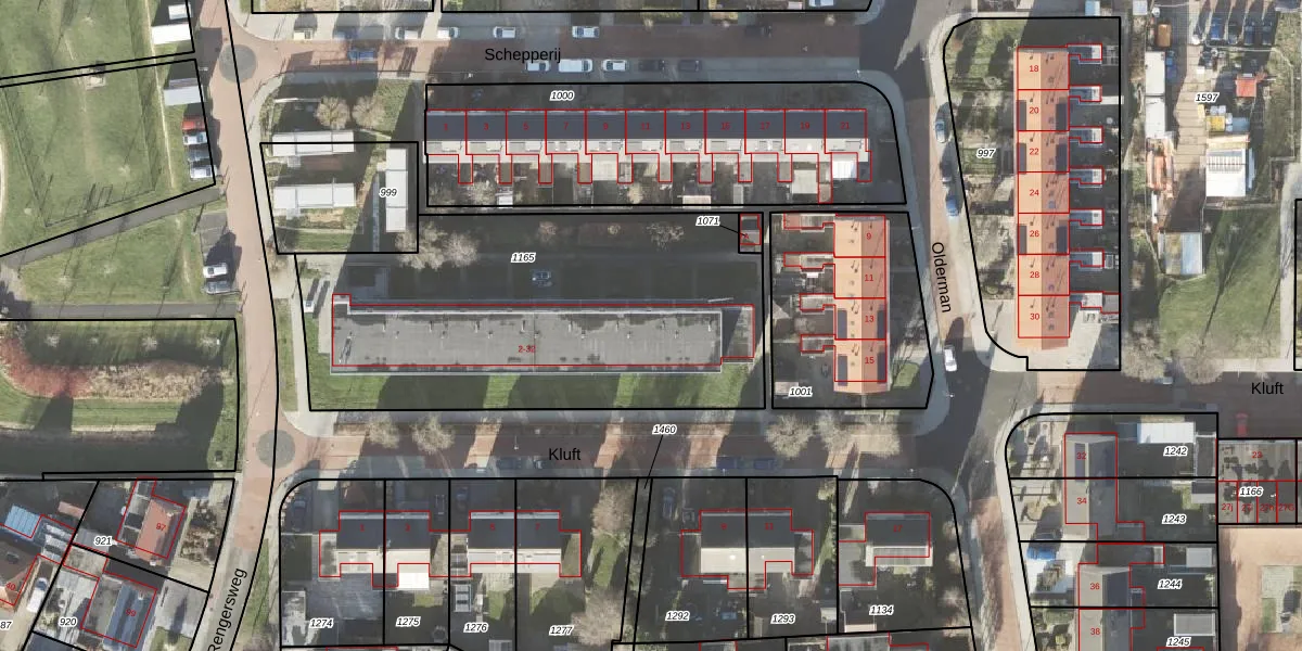 Het perceel waarop Kluft 30 staat heeft een oppervlakte van 1998 m². Dit is een zeer groot perceel. De perceeloppervlakte wordt geregistreerd door het Kadaster. Gedetailleerde informatie over de maten van dit perceel kunt u vinden in het rapport Kadastrale kaart met maatvoering van Kluft 30.