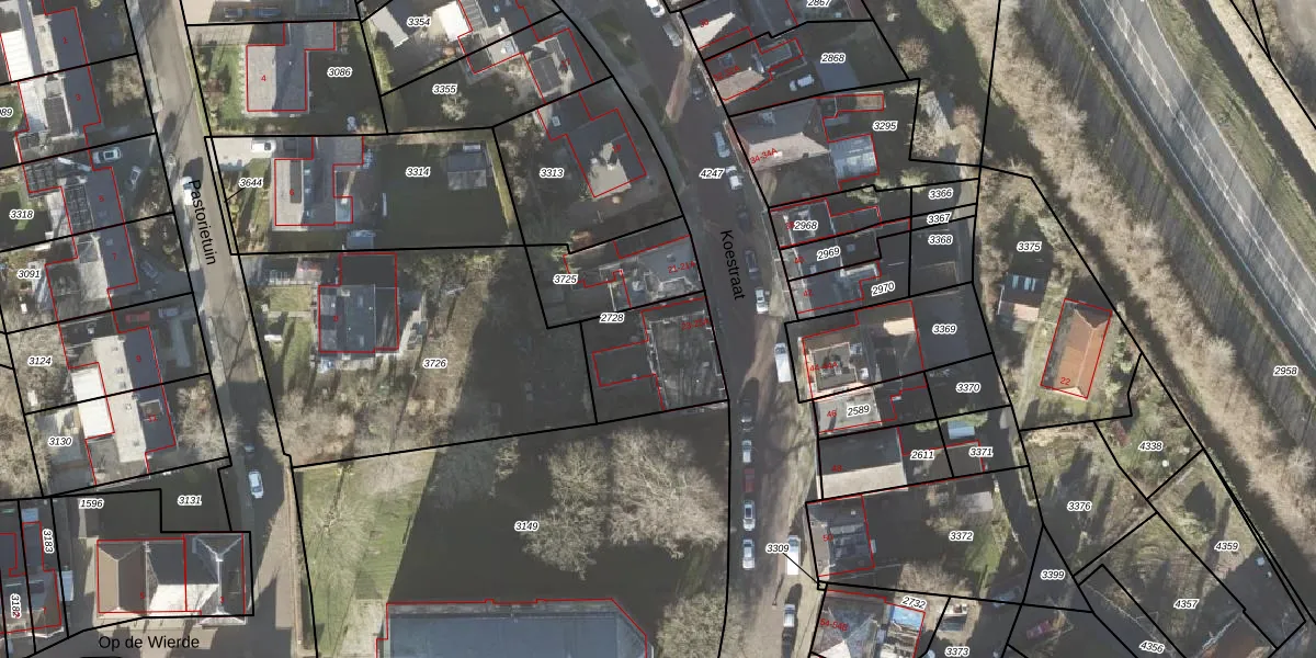 Het perceel waarop Koestraat 23-B staat heeft een oppervlakte van 323 m². Dit is een groot perceel. De perceeloppervlakte wordt geregistreerd door het Kadaster. Gedetailleerde informatie over de maten van dit perceel kunt u vinden in het rapport Kadastrale kaart met maatvoering van Koestraat 23-B.