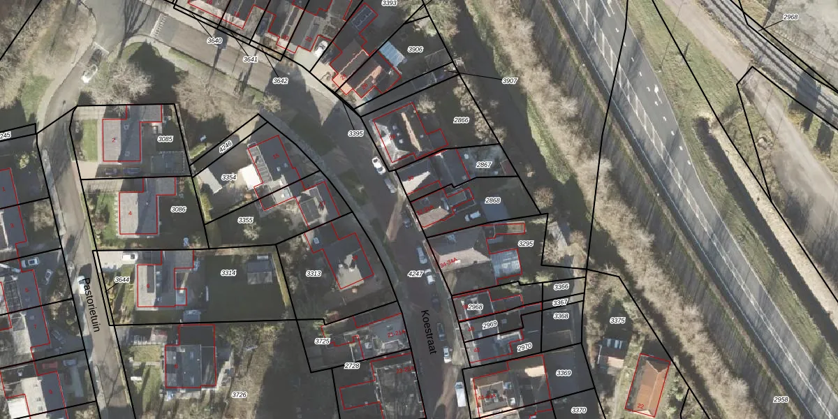 Het perceel waarop Koestraat 32 staat heeft een oppervlakte van 300 m². Dit is een groot perceel. De perceeloppervlakte wordt geregistreerd door het Kadaster. Gedetailleerde informatie over de maten van dit perceel kunt u vinden in het rapport Kadastrale kaart met maatvoering van Koestraat 32.