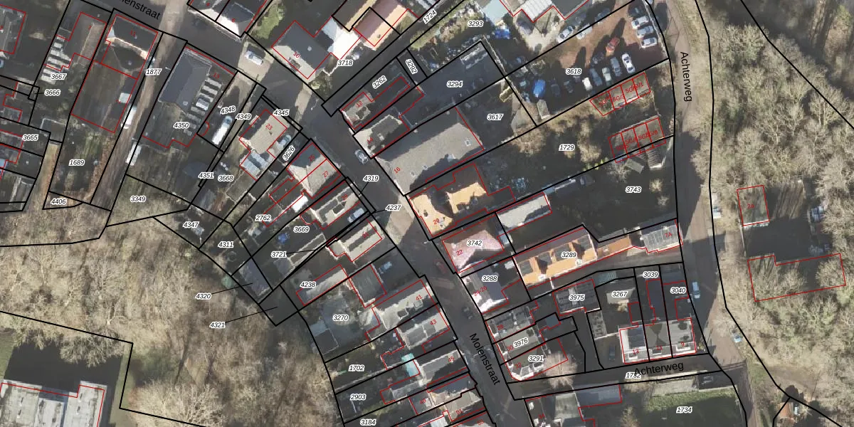 Het perceel waarop Molenstraat 20 staat heeft een oppervlakte van 960 m². Dit is een groot perceel. De perceeloppervlakte wordt geregistreerd door het Kadaster. Gedetailleerde informatie over de maten van dit perceel kunt u vinden in het rapport Kadastrale kaart met maatvoering van Molenstraat 20.
