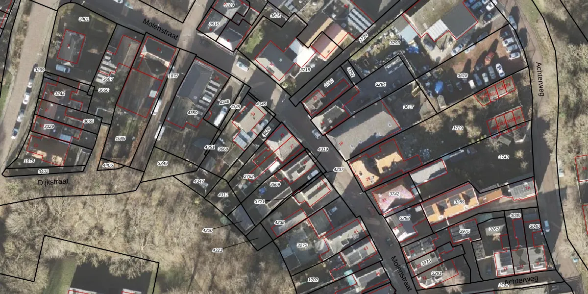 Het perceel waarop Molenstraat 27 staat heeft een oppervlakte van 277 m². Dit is een middelgroot perceel. De perceeloppervlakte wordt geregistreerd door het Kadaster. Gedetailleerde informatie over de maten van dit perceel kunt u vinden in het rapport Kadastrale kaart met maatvoering van Molenstraat 27.