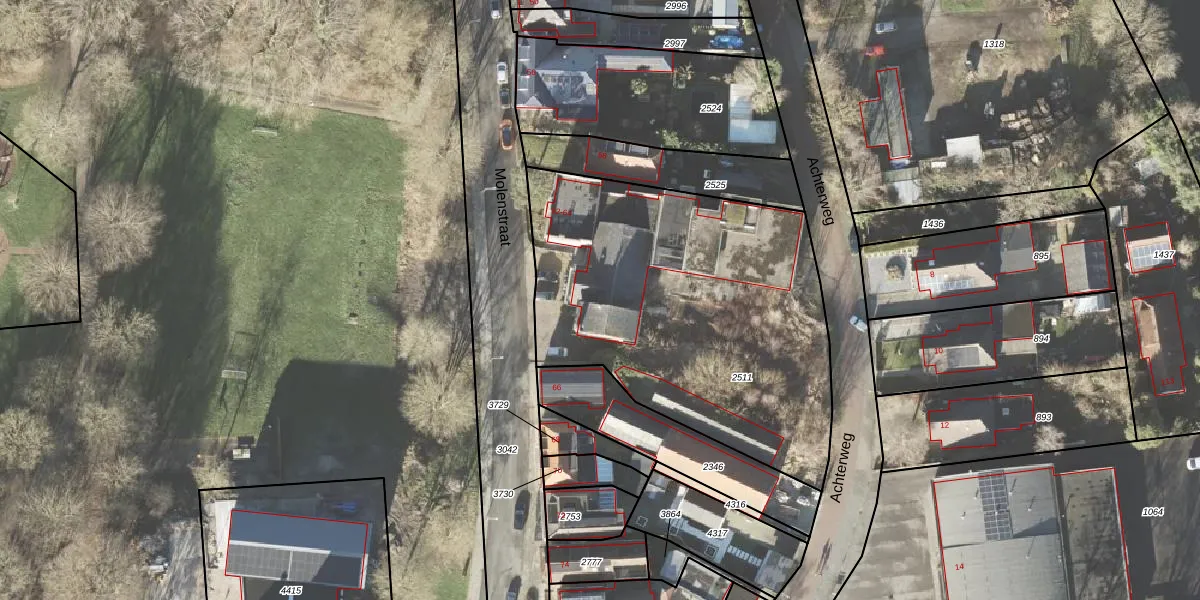Het perceel waarop Molenstraat 64 staat heeft een oppervlakte van 1850 m². Dit is een zeer groot perceel. De perceeloppervlakte wordt geregistreerd door het Kadaster. Gedetailleerde informatie over de maten van dit perceel kunt u vinden in het rapport Kadastrale kaart met maatvoering van Molenstraat 64.