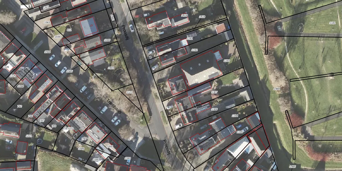 Gebruik de zoekbalk of klik op een perceel voor informatie over de adressen binnen dit perceel.