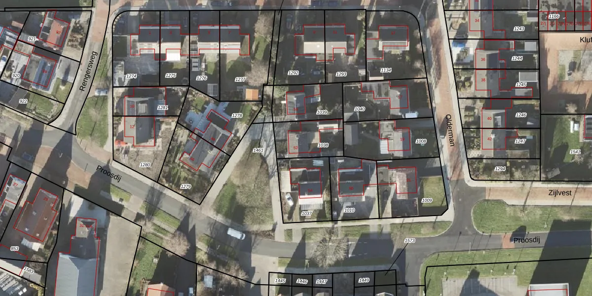 Gebruik de zoekbalk of klik op een perceel voor informatie over de adressen binnen dit perceel.