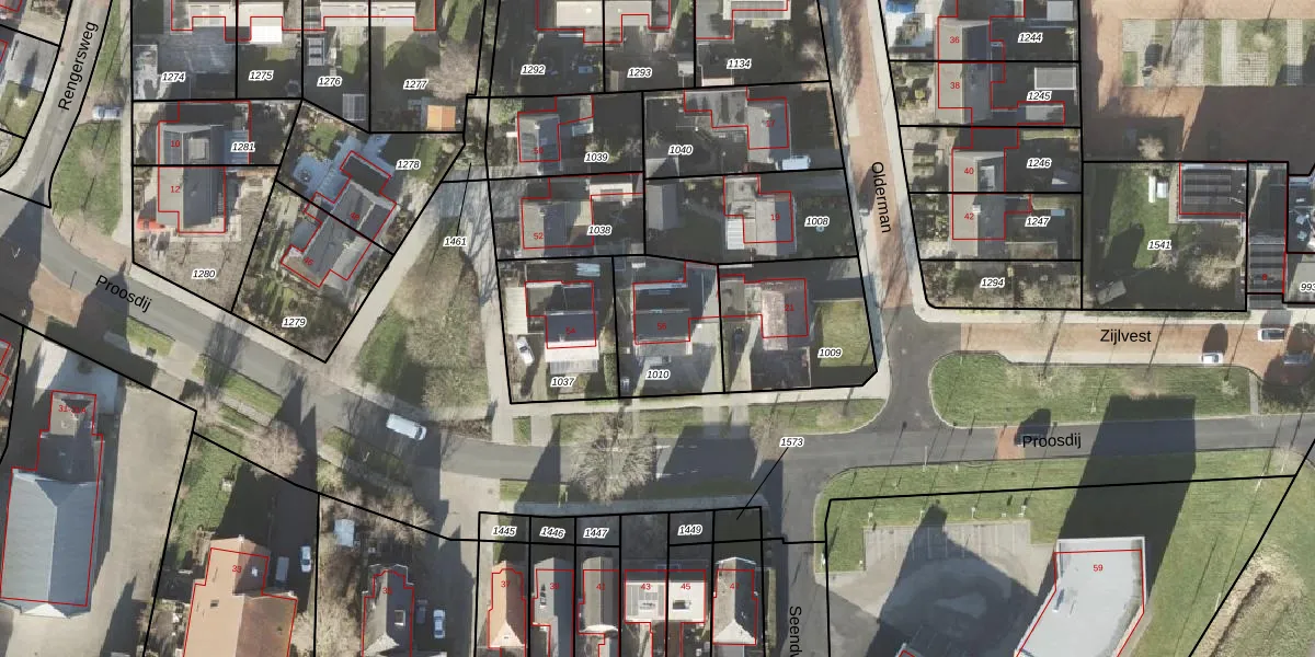 Gebruik de zoekbalk of klik op een perceel voor informatie over de adressen binnen dit perceel.