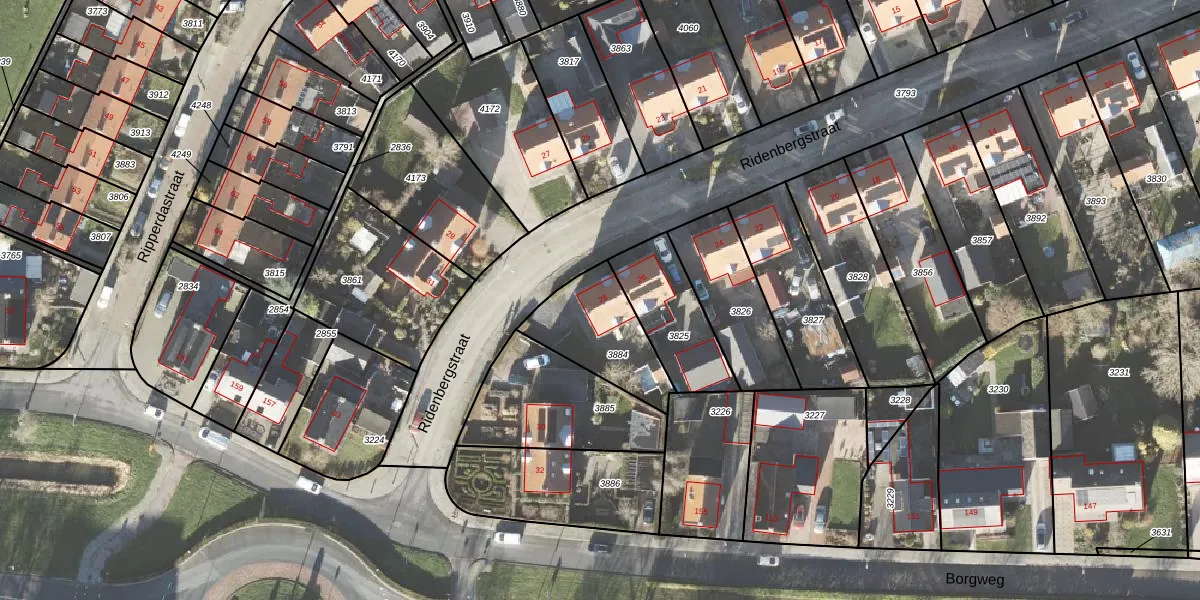 Het perceel waarop Ridenbergstraat 28 staat heeft een oppervlakte van 307 m². Dit is een groot perceel. De perceeloppervlakte wordt geregistreerd door het Kadaster. Gedetailleerde informatie over de maten van dit perceel kunt u vinden in het rapport Kadastrale kaart met maatvoering van Ridenbergstraat 28.