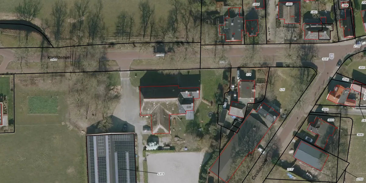 Het perceel waarop Kleasterwei 23 staat heeft een oppervlakte van 1,7 ha. Dit is een zeer groot perceel. De perceeloppervlakte wordt geregistreerd door het Kadaster. Gedetailleerde informatie over de maten van dit perceel kunt u vinden in het rapport Kadastrale kaart met maatvoering van Kleasterwei 23.