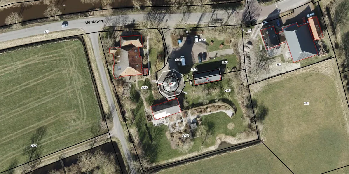 Mentaweg 1-A is gelegen op kadastraal perceel EZG00B1171. Deze kadastrale aanduiding is uniek en wordt gebruikt door het Kadaster om eigendomsrechten en andere zakelijke rechten vast te leggen. Het perceel maakt onderdeel uit van de kadastrale gemeente Ezinge.