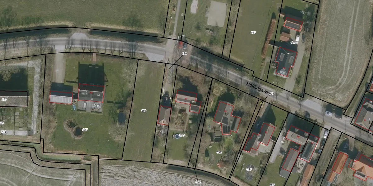 Het perceel waarop Holdingawei 47 staat heeft een oppervlakte van 850 m². Dit is een groot perceel. De perceeloppervlakte wordt geregistreerd door het Kadaster. Gedetailleerde informatie over de maten van dit perceel kunt u vinden in het rapport Kadastrale kaart met maatvoering van Holdingawei 47.