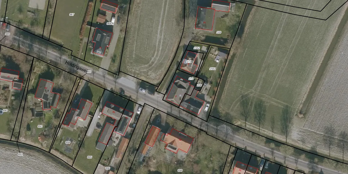 Holdingawei 6 is gelegen op kadastraal perceel HUM00F172. Deze kadastrale aanduiding is uniek en wordt gebruikt door het Kadaster om eigendomsrechten en andere zakelijke rechten vast te leggen. Het perceel maakt onderdeel uit van de kadastrale gemeente Hijum.