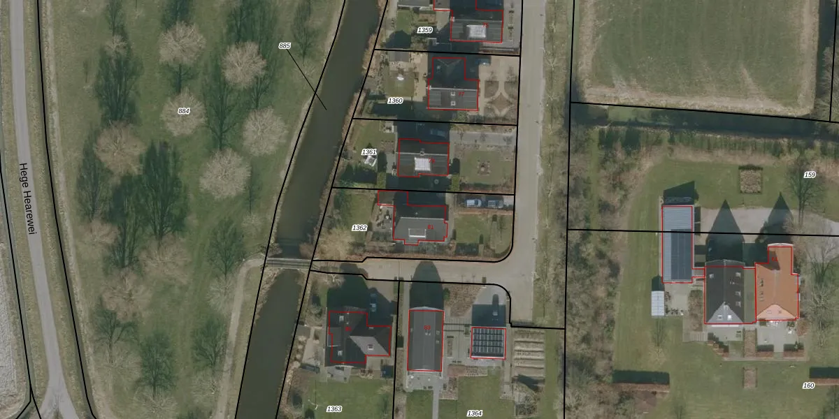 Het adres ligt op het perceel HUM00-F-1362, dat zich in de kadastrale gemeente Hijum bevindt. Het perceel is 750 m² groot. Dat is kleiner dan de gemiddelde perceeloppervlakte in Hijum, dat op 4104,77 m² ligt. De grootste perceeloppervlakte in de kadastrale gemeente is 22,8 ha. De kleinste oppervlakte bedraagt 1 m². Dit is het enige adres dat aanwezig is op het perceel. In de Basisregistratie Kadaster (BRK) werden de grenzen van het perceel geregistreerd op 03-02-2011.