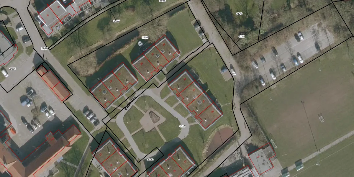 Het adres ligt op het perceel FWD00-A-3100, dat zich in de kadastrale gemeente Ferwerd bevindt. Het perceel is kleiner dan gemiddeld in Ferwerd. Het perceel is 4570 m² groot, terwijl het gemiddelde ligt op 2,6 ha. Het grootste perceel in de kadastrale gemeente is 26,41 km². Het kleinste perceel heeft een oppervlakte van 1 m². Op het perceel zijn 10 adressen aanwezig. De huidige grenzen van het perceel zijn digitaal in de Basisregistratie Kadaster (BRK) geregistreerd op 31-01-2013.