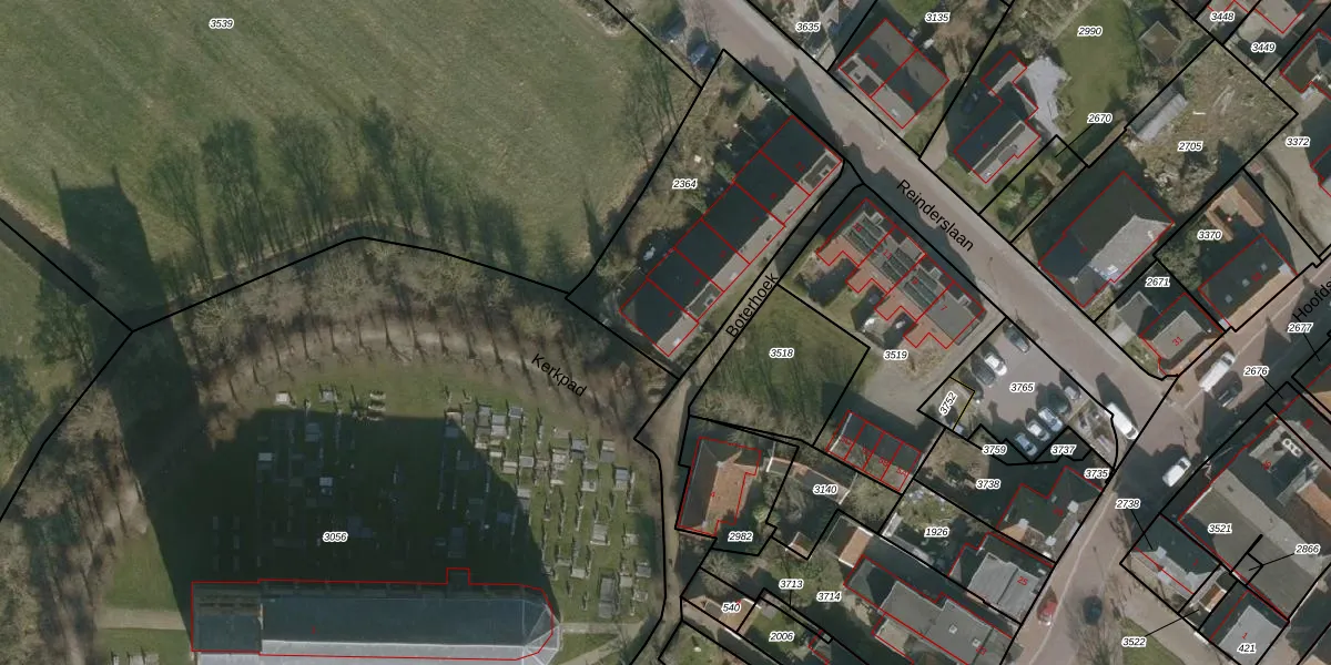 Het perceel waarop Boterhoek 1 staat heeft een oppervlakte van 955 m². Dit is een groot perceel. De perceeloppervlakte wordt geregistreerd door het Kadaster. Gedetailleerde informatie over de maten van dit perceel kunt u vinden in het rapport Kadastrale kaart met maatvoering van Boterhoek 1.