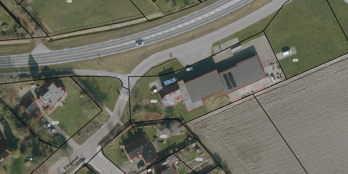 Het perceel waarop Elingawei 20 staat heeft een oppervlakte van 2504 m². Dit is een zeer groot perceel. De perceeloppervlakte wordt geregistreerd door het Kadaster. Gedetailleerde informatie over de maten van dit perceel kunt u vinden in het rapport Kadastrale kaart met maatvoering van Elingawei 20.