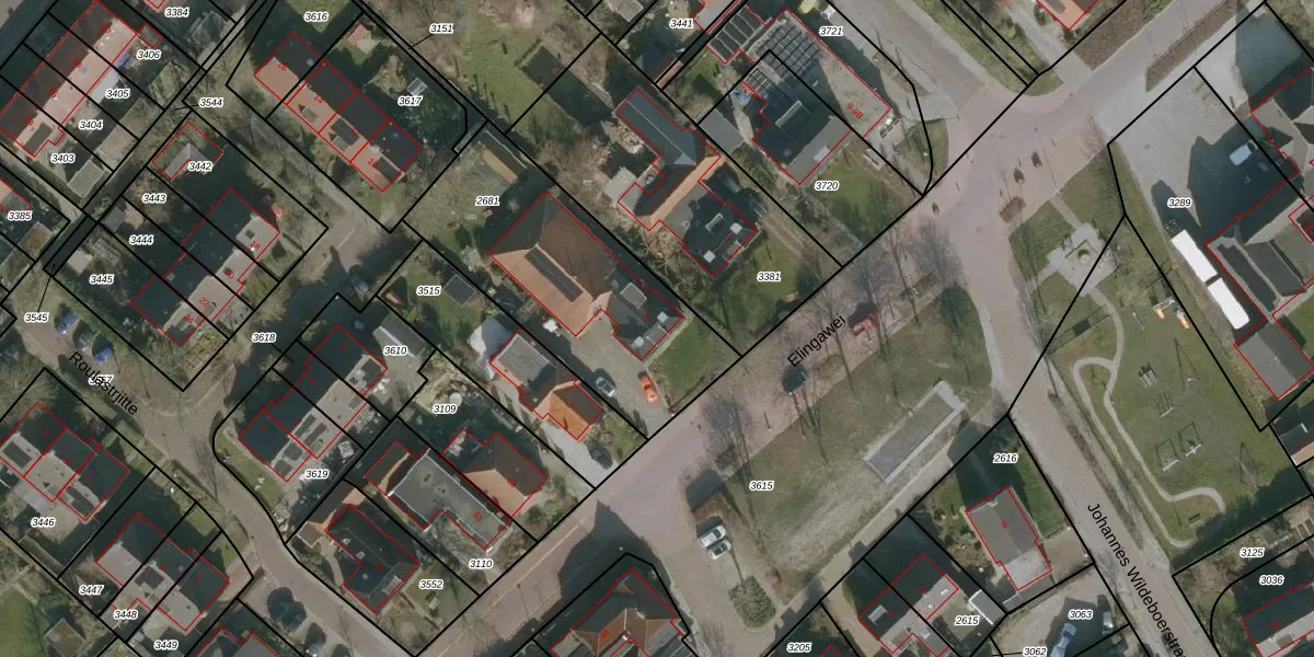 Het perceel waarop Elingawei 3 staat heeft een oppervlakte van 1007 m². Dit is een zeer groot perceel. De perceeloppervlakte wordt geregistreerd door het Kadaster. Gedetailleerde informatie over de maten van dit perceel kunt u vinden in het rapport Kadastrale kaart met maatvoering van Elingawei 3.