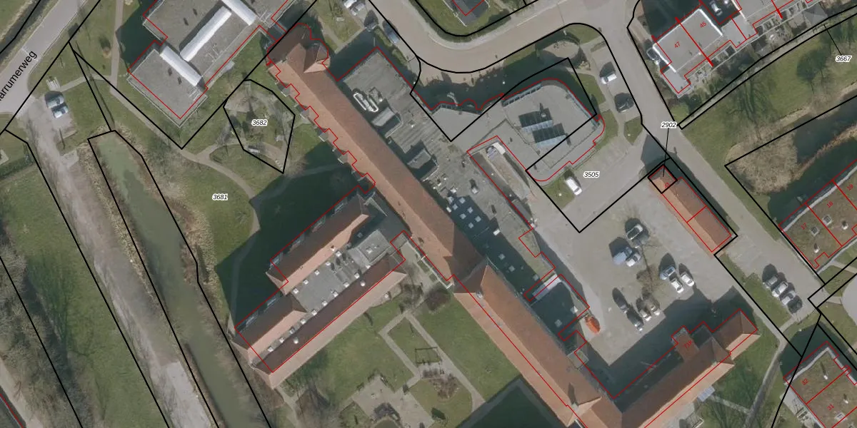 Het adres ligt op het perceel FWD00-A-3681, dat zich in de kadastrale gemeente Ferwerd bevindt. Het perceel is kleiner dan gemiddeld in Ferwerd. Het perceel is 1,6 ha groot, terwijl het gemiddelde ligt op 2,6 ha. Het kleinste perceel in de kadastrale gemeente is 1 m² groot. De grootste perceeloppervlakte is 26,41 km². Er zijn 84 adressen aanwezig op het perceel. De huidige grenzen van het perceel zijn digitaal in de Basisregistratie Kadaster (BRK) geregistreerd op 02-11-2016.