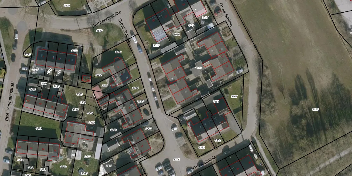 Het perceel waarop Great Sminia 5 staat heeft een oppervlakte van 1665 m². Dit is een zeer groot perceel. De perceeloppervlakte wordt geregistreerd door het Kadaster. Gedetailleerde informatie over de maten van dit perceel kunt u vinden in het rapport Kadastrale kaart met maatvoering van Great Sminia 5.
