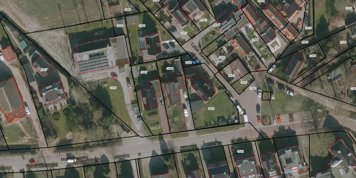 Het perceel waarop Marrumerweg 2-A staat heeft een oppervlakte van 590 m². Dit is een groot perceel. De perceeloppervlakte wordt geregistreerd door het Kadaster. Gedetailleerde informatie over de maten van dit perceel kunt u vinden in het rapport Kadastrale kaart met maatvoering van Marrumerweg 2-A.