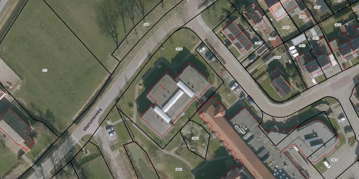 Het perceel waarop Marrumerweg 51-D staat heeft een oppervlakte van 2120 m². Dit is een zeer groot perceel. De perceeloppervlakte wordt geregistreerd door het Kadaster. Gedetailleerde informatie over de maten van dit perceel kunt u vinden in het rapport Kadastrale kaart met maatvoering van Marrumerweg 51-D.