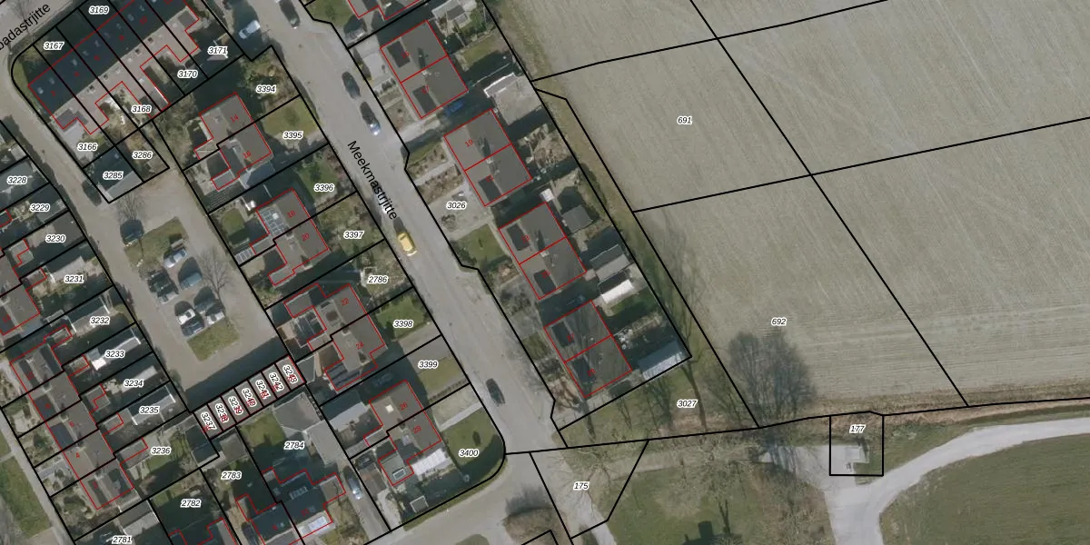 Het perceel waarop Meekmastrjitte 25 staat heeft een oppervlakte van 2132 m². Dit is een zeer groot perceel. De perceeloppervlakte wordt geregistreerd door het Kadaster. Gedetailleerde informatie over de maten van dit perceel kunt u vinden in het rapport Kadastrale kaart met maatvoering van Meekmastrjitte 25.