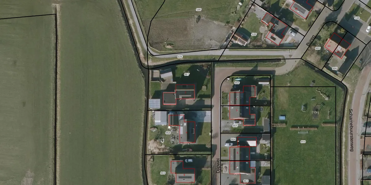 Het perceel waarop Djipwei 2 staat heeft een oppervlakte van 850 m². Dit is een groot perceel. De perceeloppervlakte wordt geregistreerd door het Kadaster. Gedetailleerde informatie over de maten van dit perceel kunt u vinden in het rapport Kadastrale kaart met maatvoering van Djipwei 2.