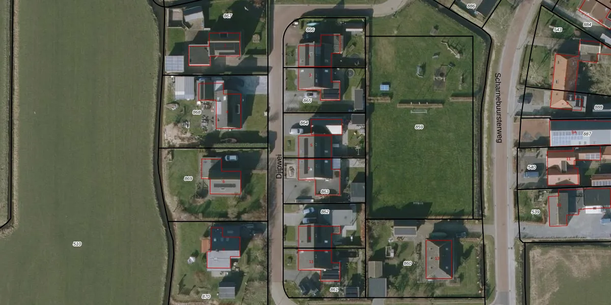 Djipwei 5 is gelegen op kadastraal perceel GAA00D864. Deze kadastrale aanduiding is uniek en wordt gebruikt door het Kadaster om eigendomsrechten en andere zakelijke rechten vast te leggen. Het perceel maakt onderdeel uit van de kadastrale gemeente Gaast.