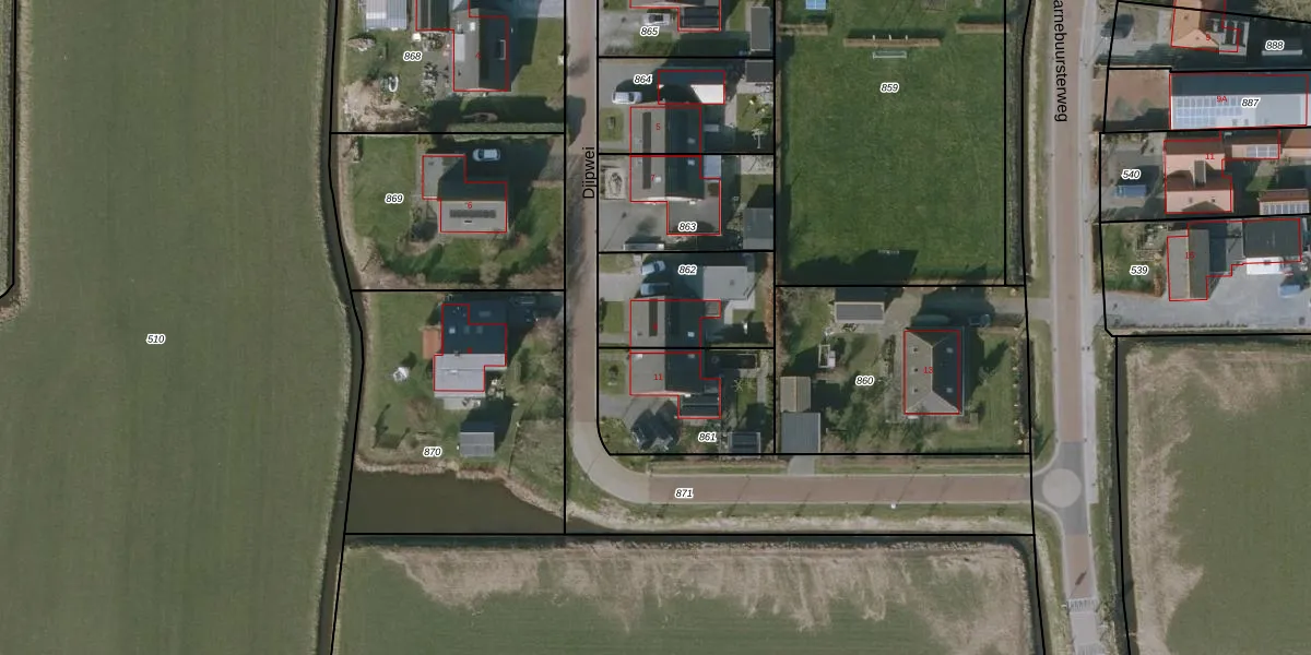 Gebruik de zoekbalk of klik op een perceel voor informatie over de adressen binnen dit perceel.
