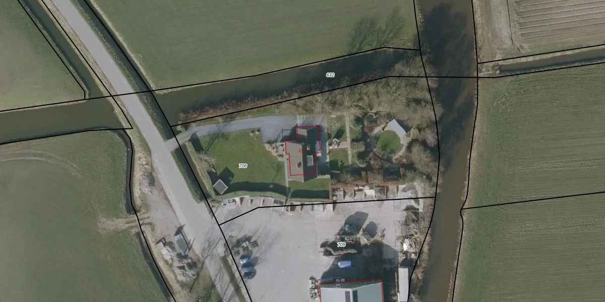Het perceel waarop het adres ligt is GAA00-D-708. De afkorting 'GAA00' staat voor kadastrale gemeente Gaast. De gemiddelde perceelgrootte in Gaast is 1,7 ha. Dit perceel is kleiner: de perceeloppervlakte bedraagt 2960 m². De grootste perceeloppervlakte in de kadastrale gemeente is 14,0 ha. De kleinste oppervlakte bedraagt 2 m². Er zijn geen andere adressen aanwezig op het perceel. De huidige grenzen van het perceel zijn digitaal in de Basisregistratie Kadaster (BRK) geregistreerd op 10-09-2015.
