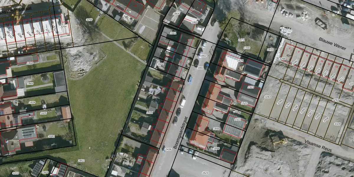 Het perceel waarop Boomgaardstraat 19 staat heeft een oppervlakte van 963 m². Dit is een groot perceel. De perceeloppervlakte wordt geregistreerd door het Kadaster. Gedetailleerde informatie over de maten van dit perceel kunt u vinden in het rapport Kadastrale kaart met maatvoering van Boomgaardstraat 19.