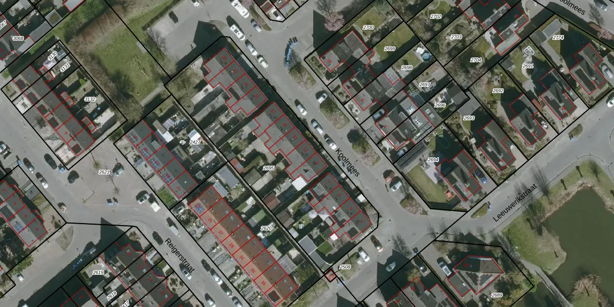 Het perceel waarop Koolmees 11 staat heeft een oppervlakte van 2105 m². Dit is een zeer groot perceel. De perceeloppervlakte wordt geregistreerd door het Kadaster. Gedetailleerde informatie over de maten van dit perceel kunt u vinden in het rapport Kadastrale kaart met maatvoering van Koolmees 11.