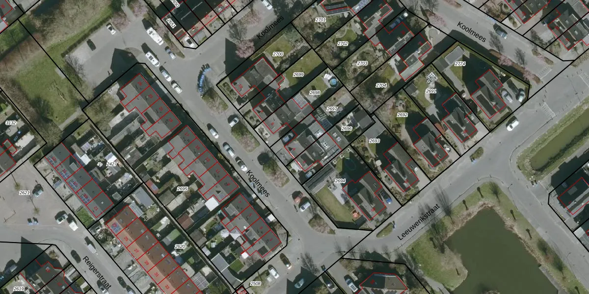 Gebruik de zoekbalk of klik op een perceel voor informatie over de adressen binnen dit perceel.