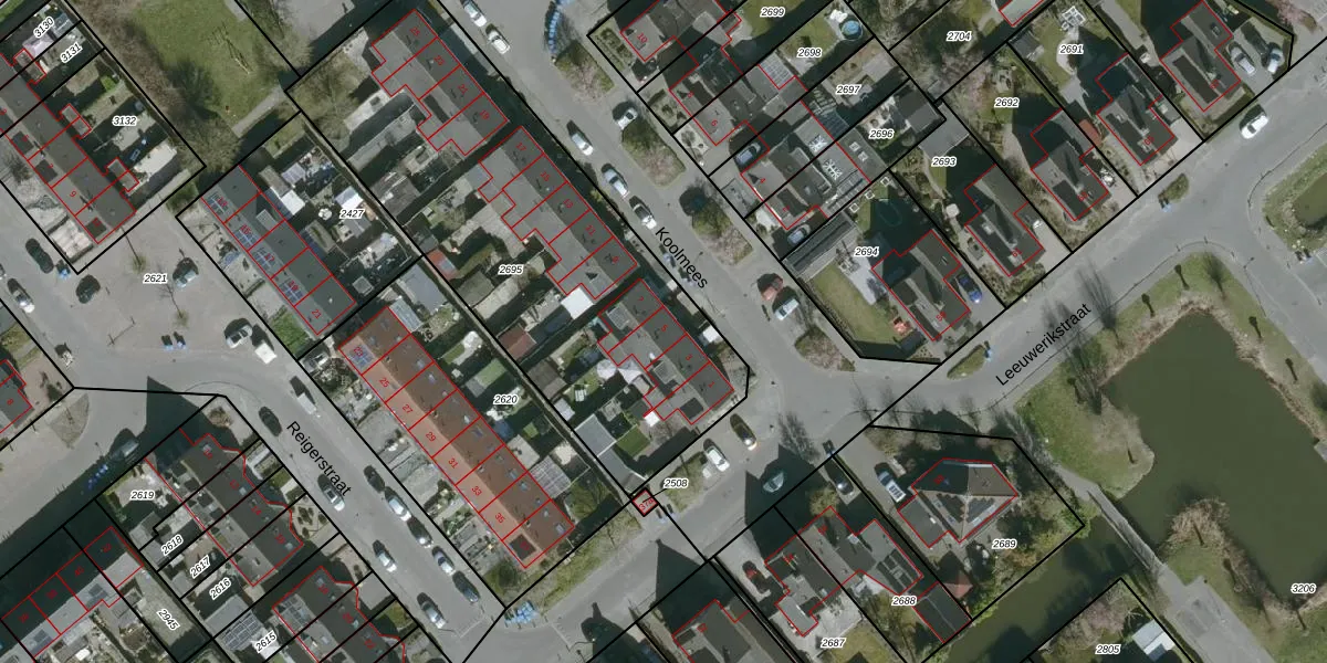 Het perceel waarop Koolmees 5 staat heeft een oppervlakte van 2105 m². Dit is een zeer groot perceel. De perceeloppervlakte wordt geregistreerd door het Kadaster. Gedetailleerde informatie over de maten van dit perceel kunt u vinden in het rapport Kadastrale kaart met maatvoering van Koolmees 5.