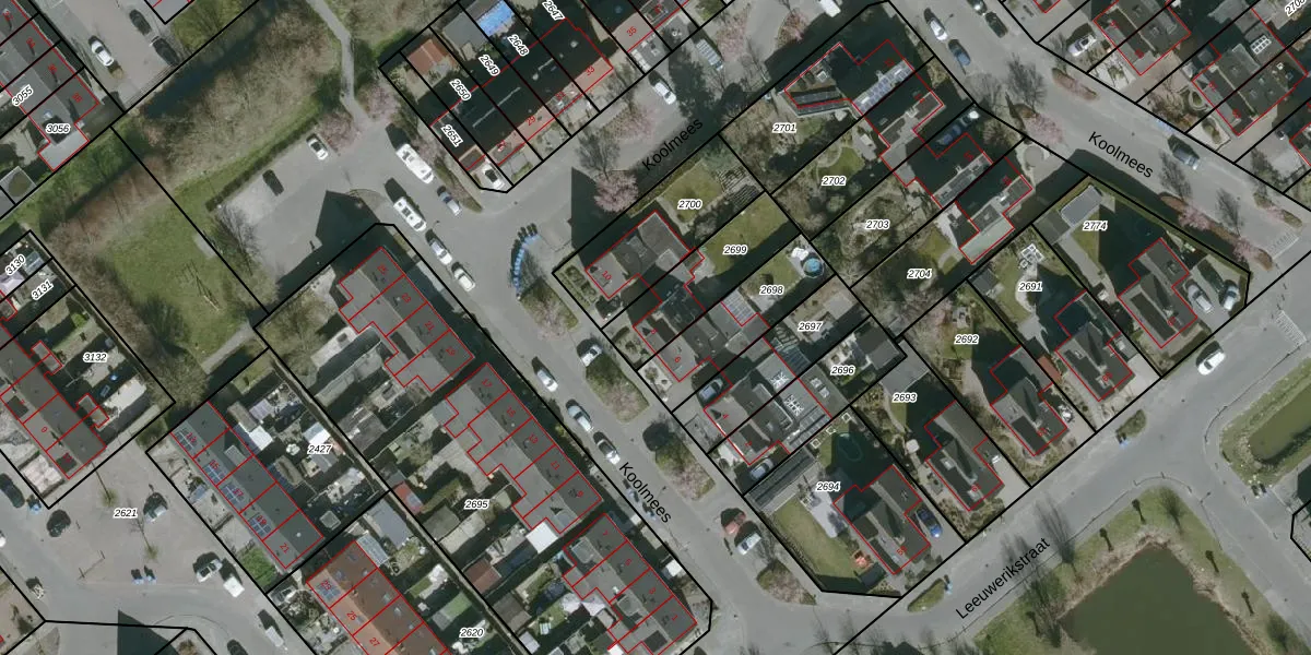 Gebruik de zoekbalk of klik op een perceel voor informatie over de adressen binnen dit perceel.