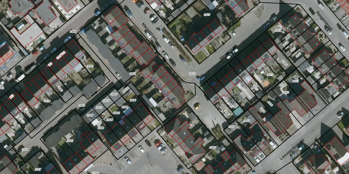 Het perceel waarop Merelstraat 22 staat heeft een oppervlakte van 1885 m². Dit is een zeer groot perceel. De perceeloppervlakte wordt geregistreerd door het Kadaster. Gedetailleerde informatie over de maten van dit perceel kunt u vinden in het rapport Kadastrale kaart met maatvoering van Merelstraat 22.