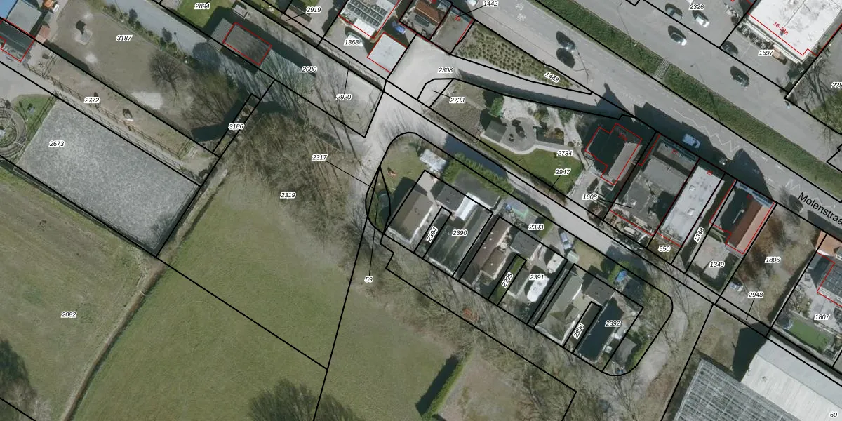 Het perceel waarop Molenstraat 27-g staat heeft een oppervlakte van 317 m². Dit is een groot perceel. De perceeloppervlakte wordt geregistreerd door het Kadaster. Gedetailleerde informatie over de maten van dit perceel kunt u vinden in het rapport Kadastrale kaart met maatvoering van Molenstraat 27-g.