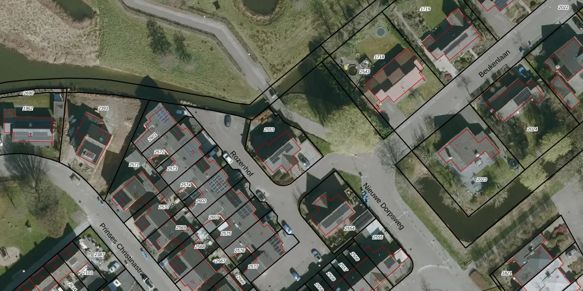 Gebruik de zoekbalk of klik op een perceel voor informatie over de adressen binnen dit perceel.
