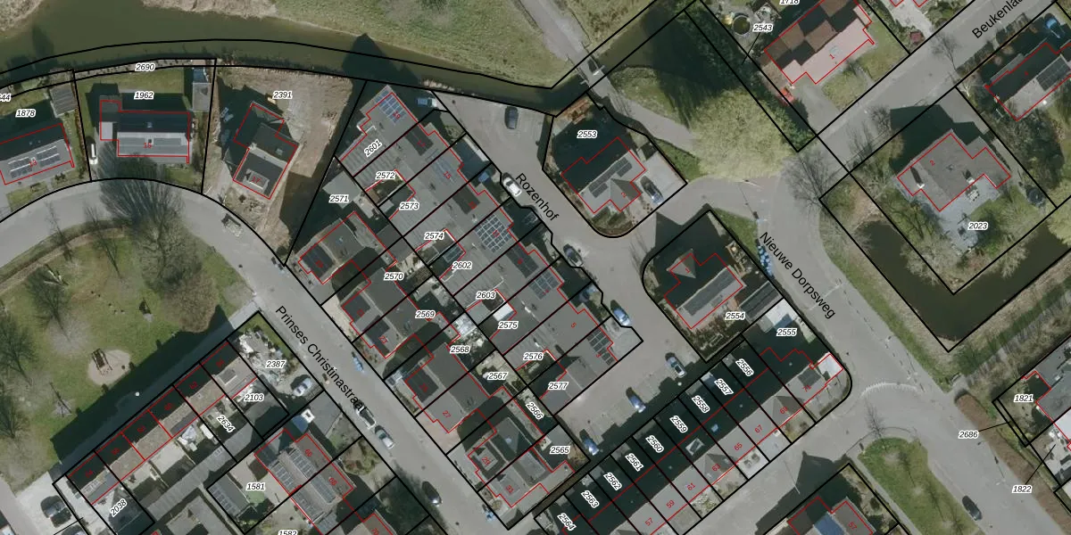 Het perceel waarop Rozenhof 9 staat heeft een oppervlakte van 153 m². Dit is een middelgroot perceel. De perceeloppervlakte wordt geregistreerd door het Kadaster. Gedetailleerde informatie over de maten van dit perceel kunt u vinden in het rapport Kadastrale kaart met maatvoering van Rozenhof 9.