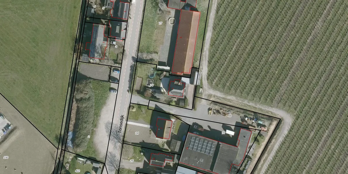 Het perceel waarop Tonsedijk 4 staat heeft een oppervlakte van 725 m². Dit is een groot perceel. De perceeloppervlakte wordt geregistreerd door het Kadaster. Gedetailleerde informatie over de maten van dit perceel kunt u vinden in het rapport Kadastrale kaart met maatvoering van Tonsedijk 4.