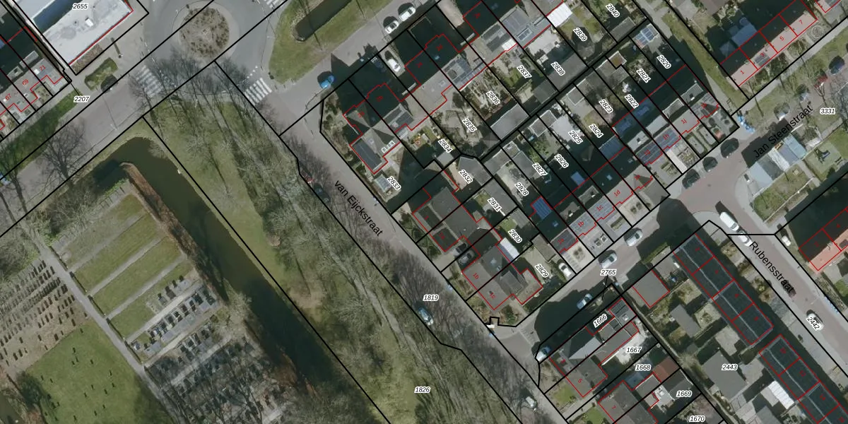 Gebruik de zoekbalk of klik op een perceel voor informatie over de adressen binnen dit perceel.