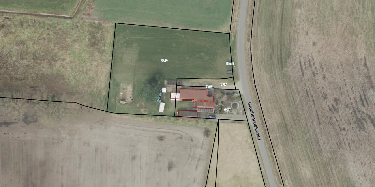Grobbenhoeksweg 16-a is gelegen op kadastraal perceel TBG02I5470. Deze kadastrale aanduiding is uniek en wordt gebruikt door het Kadaster om eigendomsrechten en andere zakelijke rechten vast te leggen. Het perceel maakt onderdeel uit van de kadastrale gemeente Tubbergen.